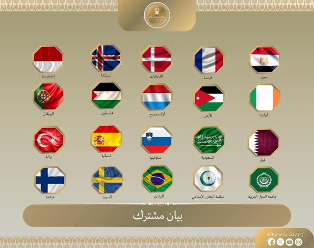 قال وزراء خارجية كلٍ من مصر والسعودية والبرازيل وفرنسا والدنمارك وفنلندا وآيسلندا وإندونيسيا وأيرلندا والأردن ولوكسمبورج والنرويج والبرتغال وقطر وسلوفينيا وإسبانيا والسويد وتركيا، إلى جانب الأمينَين العامَّين لجامعة الدول العربية ومنظمة التعاون الإسلامي، إنهم يدينون بأشد العبارات سلسلة القرارات الإسرائيلية الأخيرة التي تُدخل توسعات واسعة النطاق على السيطرة الإسرائيلية غير القانونية على الضفة الغربية، والتي تشمل إعادة تصنيف مساحات واسعة من الأراضي الفلسطينية باعتبارها ما يسمى «أراضي دولة» إسرائيلية، وتسريع النشاط الاستيطاني غير القانوني، وتعزيز ترسيخ الإدارة الإسرائيلية.